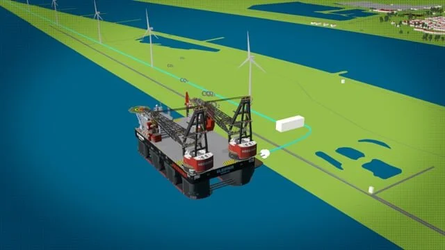 When moored in Rotterdam, Heerema’s vessels will be connected to wind turbines on the Rozenburg headland. This ensures that all noise and emissions associated to these moored vessels will be virtually eliminated.