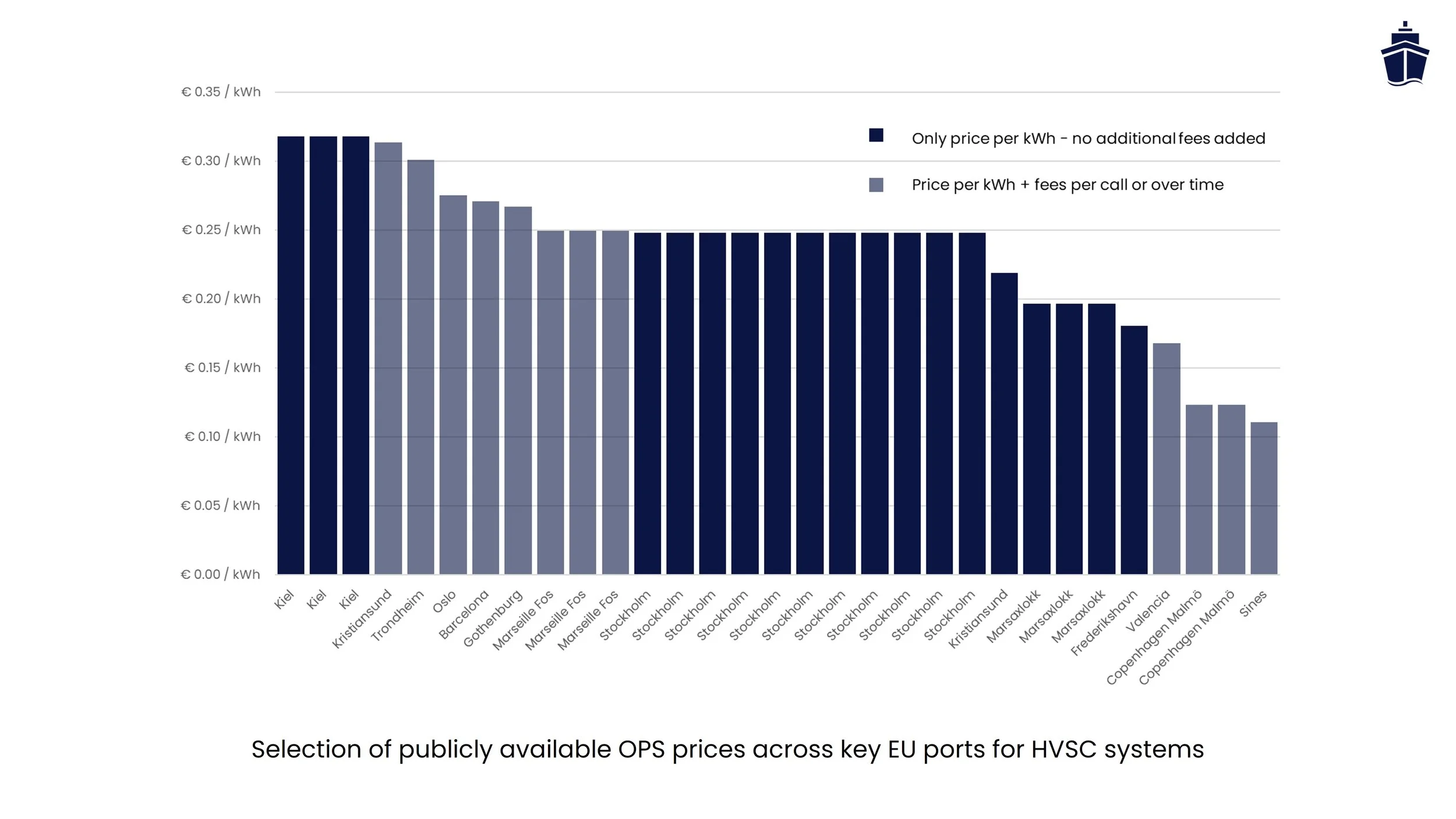 Recent study by Sustainable Ships reveals that average OPS price is ~€0.25 per kWh in EU