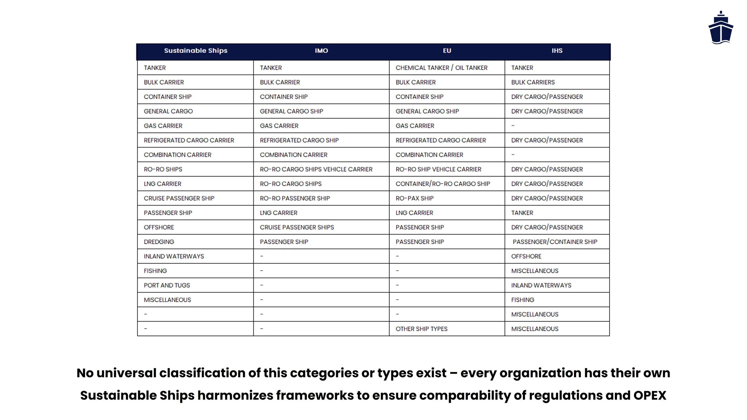 → Sustainable Ships harmonizes frameworks resulting in clearly defined ship categories, types and sizes