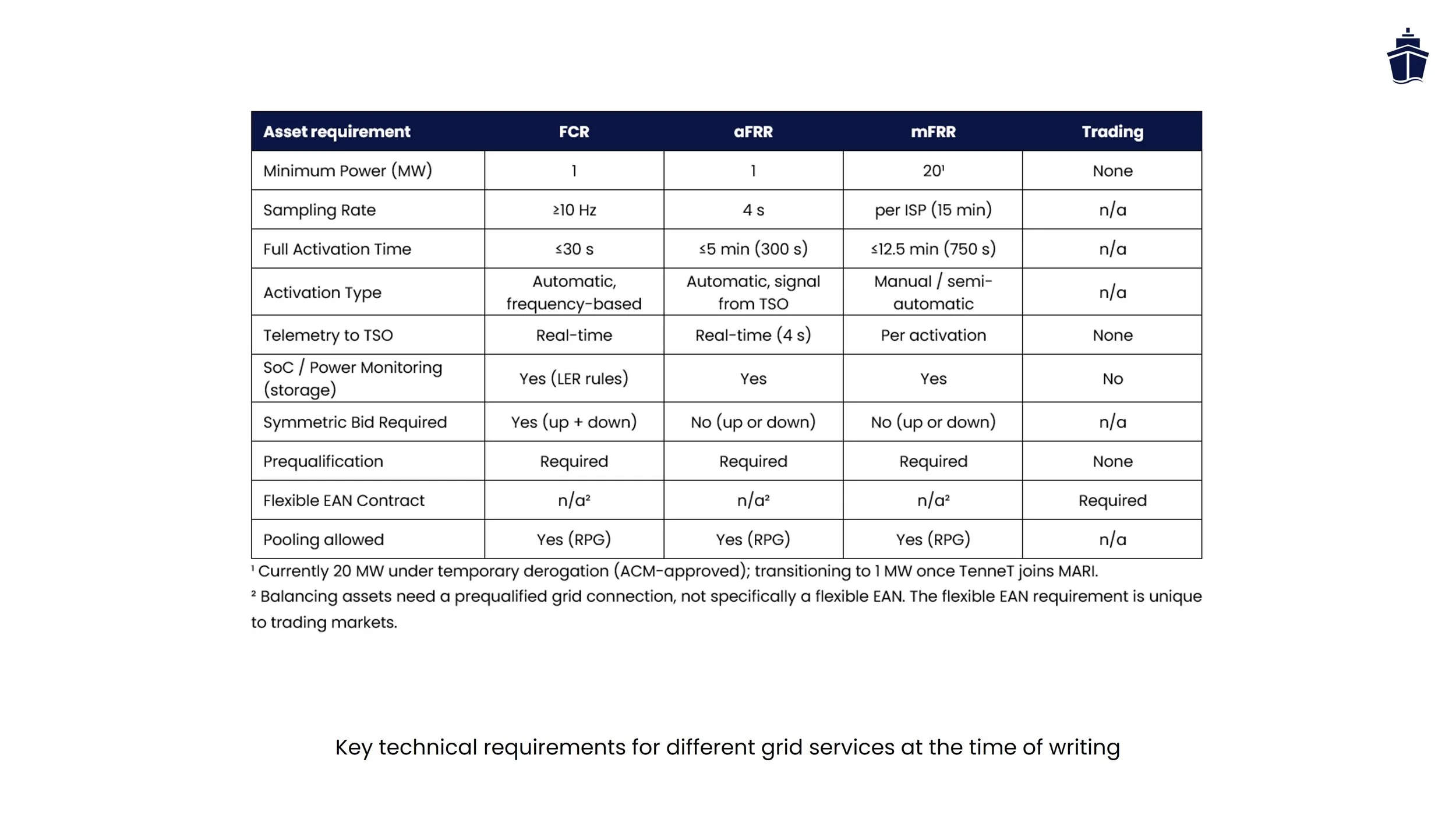 This FAQ provides essential answers on grid balancing markets (FCR, aFRR, mFRR), trading markets (day-ahead, intraday), and congestion management. Covers prequalification timelines, revenue ranges, operator roles, technical requirements, and more. It is intended for developers and asset owners in Northwest Europe.