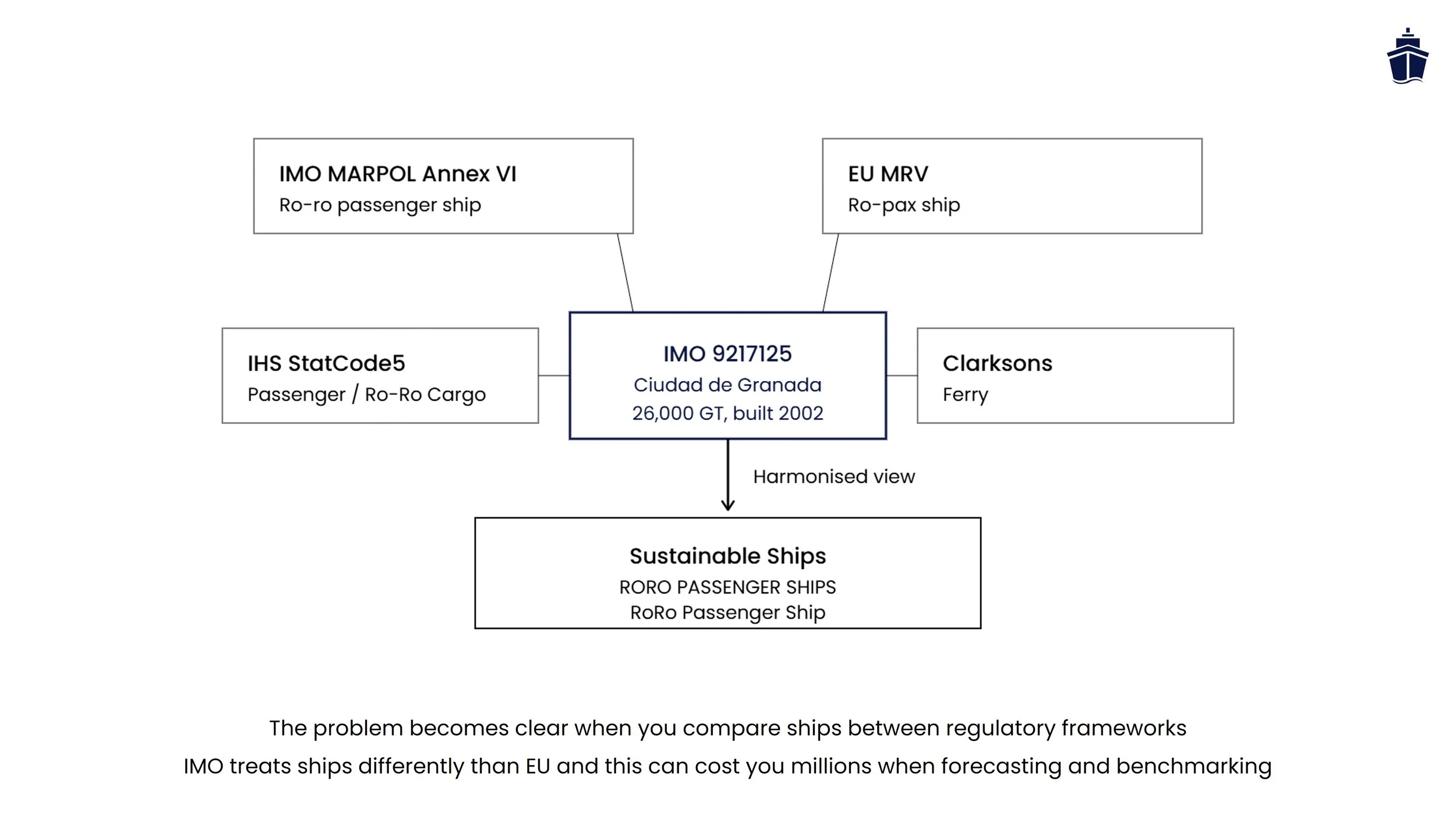 Regulatory exposure is sensitive to classification - The same vessel, misclassified in EU MRV or FuelEU reporting, lands in the wrong carbon intensity band or compliance pathway. The financial impact scales to millions of dollars across a fleet and a decade of regulations.